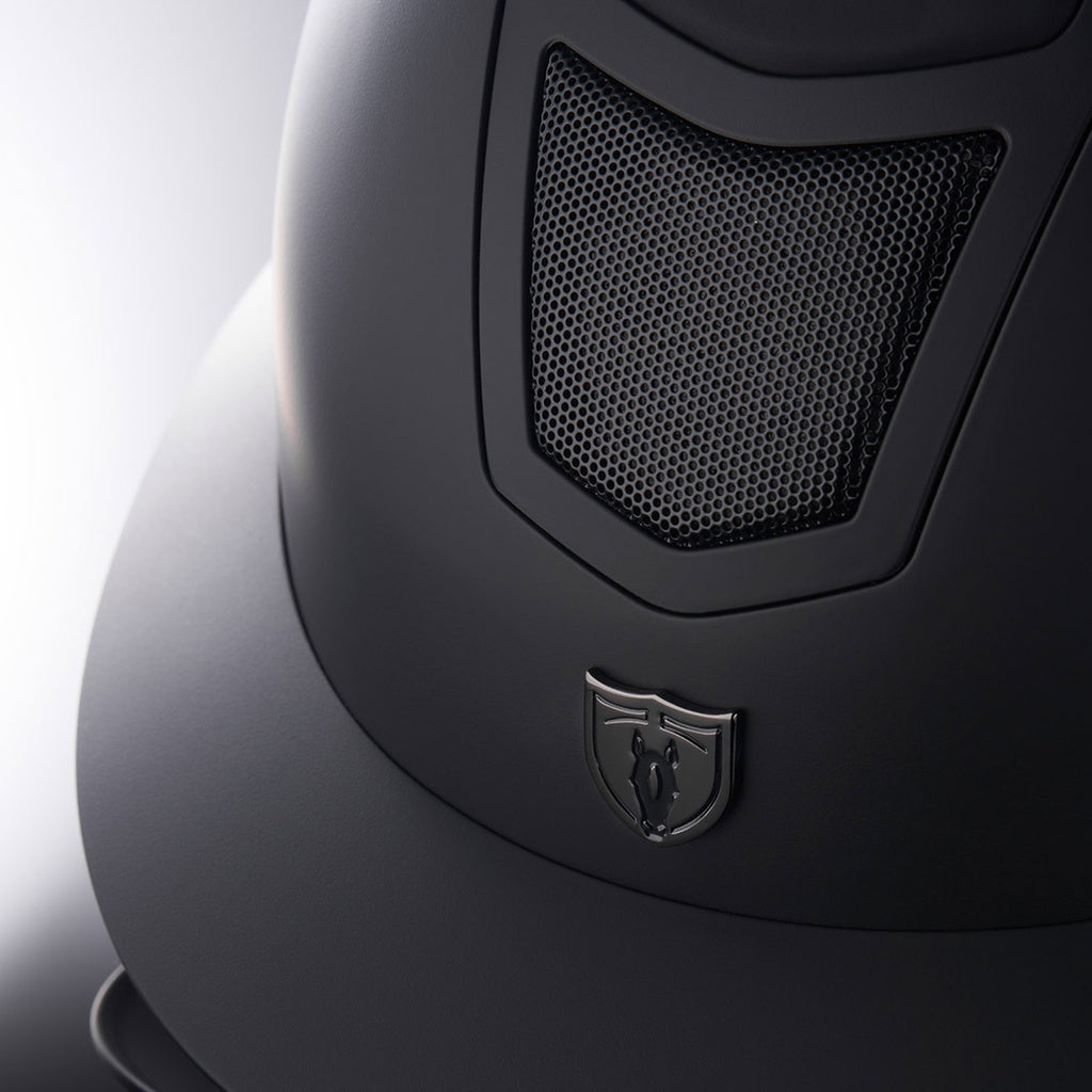 Don’t sacrifice style for protection with the Devon collection, featuring Mips® (Multi-Directional Impact Protection System). Turn heads in the arena with the opulent black sparkle top featuring a lavish glossy black trim and wide brim. Or, go with the classic velvety UltraMatte top and wide brim for the hunter ring. So many options available in this beautiful helmet.